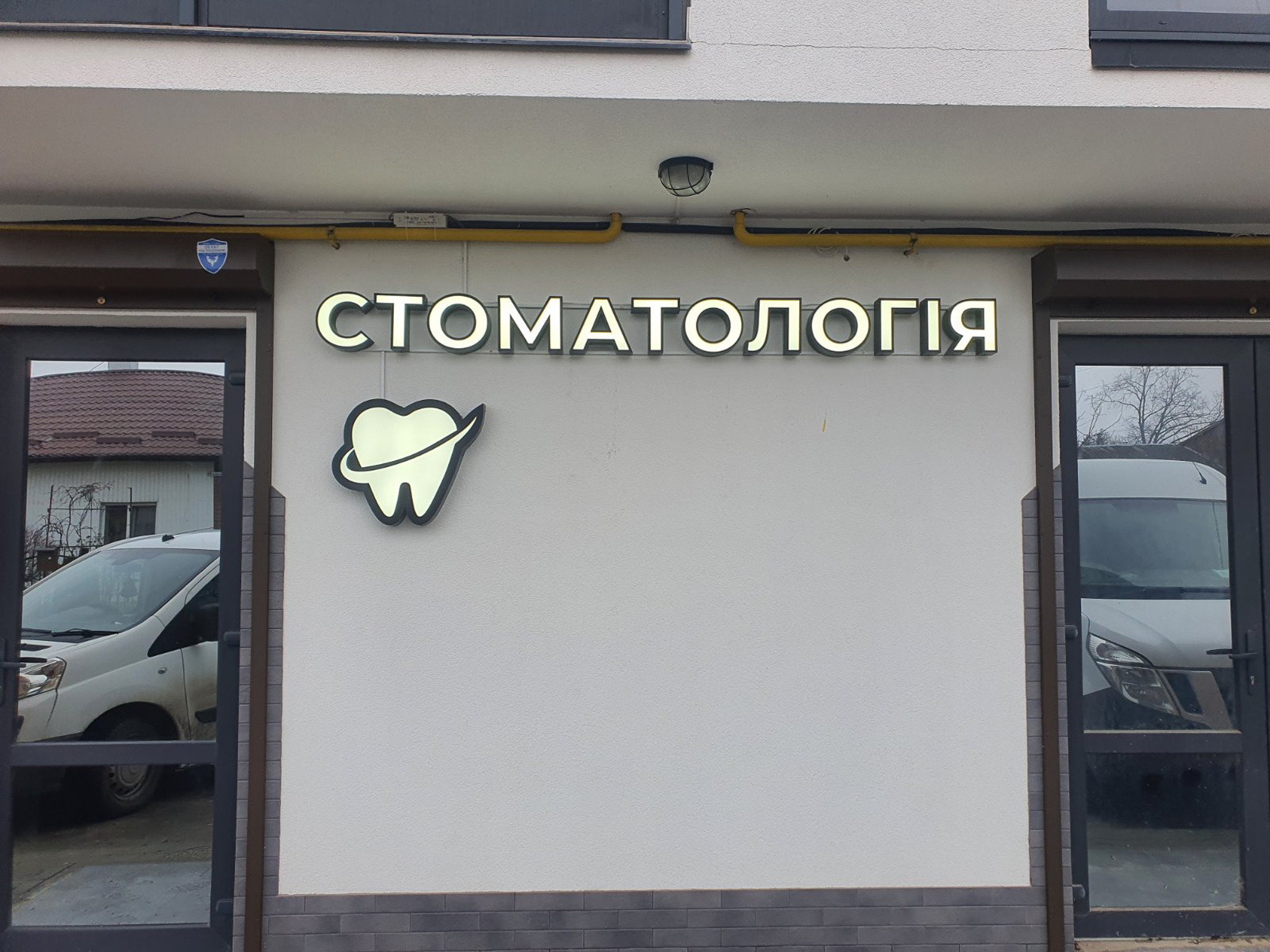 1. Вивіска виконана в виді окремих об’ємних букв з внутрішньою діодною підсвіткою, від фасаду виступає не більше 100 мм, висота букви становить 80% висоти руста будинку, при цьому висота букви не більше 300 мм і її товщина не більше - 60 мм.