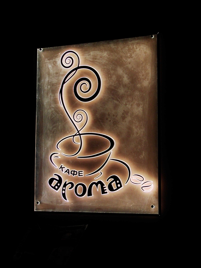 2. Вивіска знаходиться на сучасному будинку, у новому районі. Все навпаки! Вітаються сучасні матеріали, алюміній, акрили і інші пластики, композити, скло, пряма підсвітка, вивіски у вигляді коробів- торцеві і на фасаді. Протягом 2015 року йшла тенденція до зменшення розмірів вивісок, розташованих в межах охорони історичного середовища м. Львова. В 2016 році в існуючі правила встановлення вивісок внесли зміни стосовно розмірів: в межах охорони історичного середовища площа вивіски не може перевищувати 1 м.кв., за межами не більше 3 м.кв.