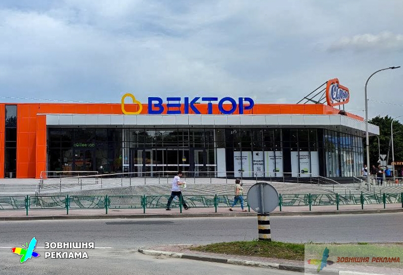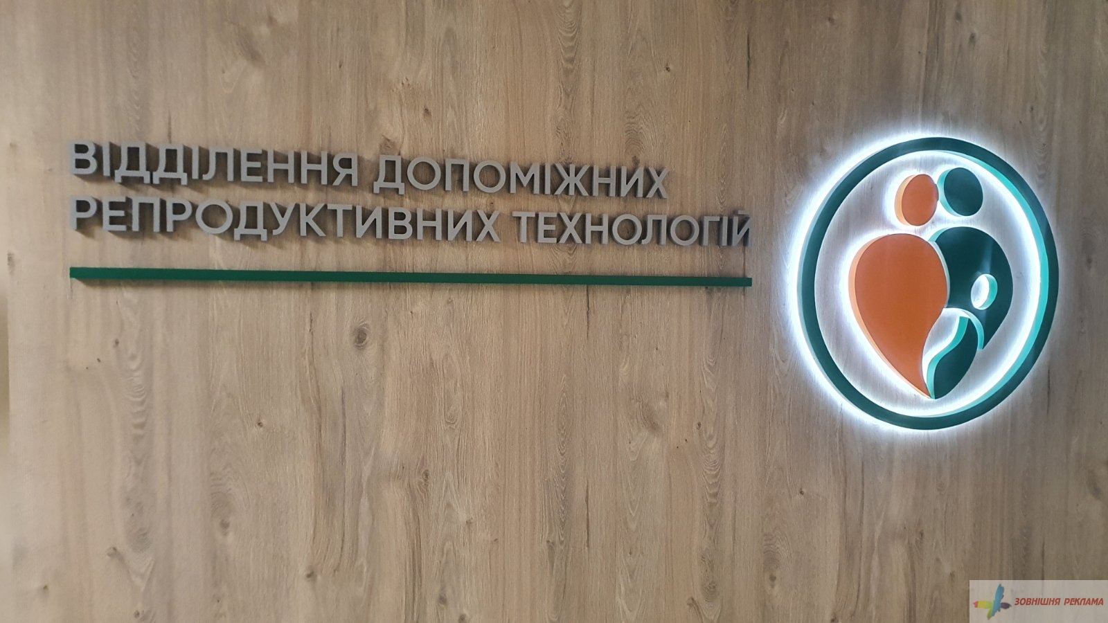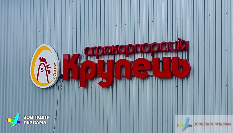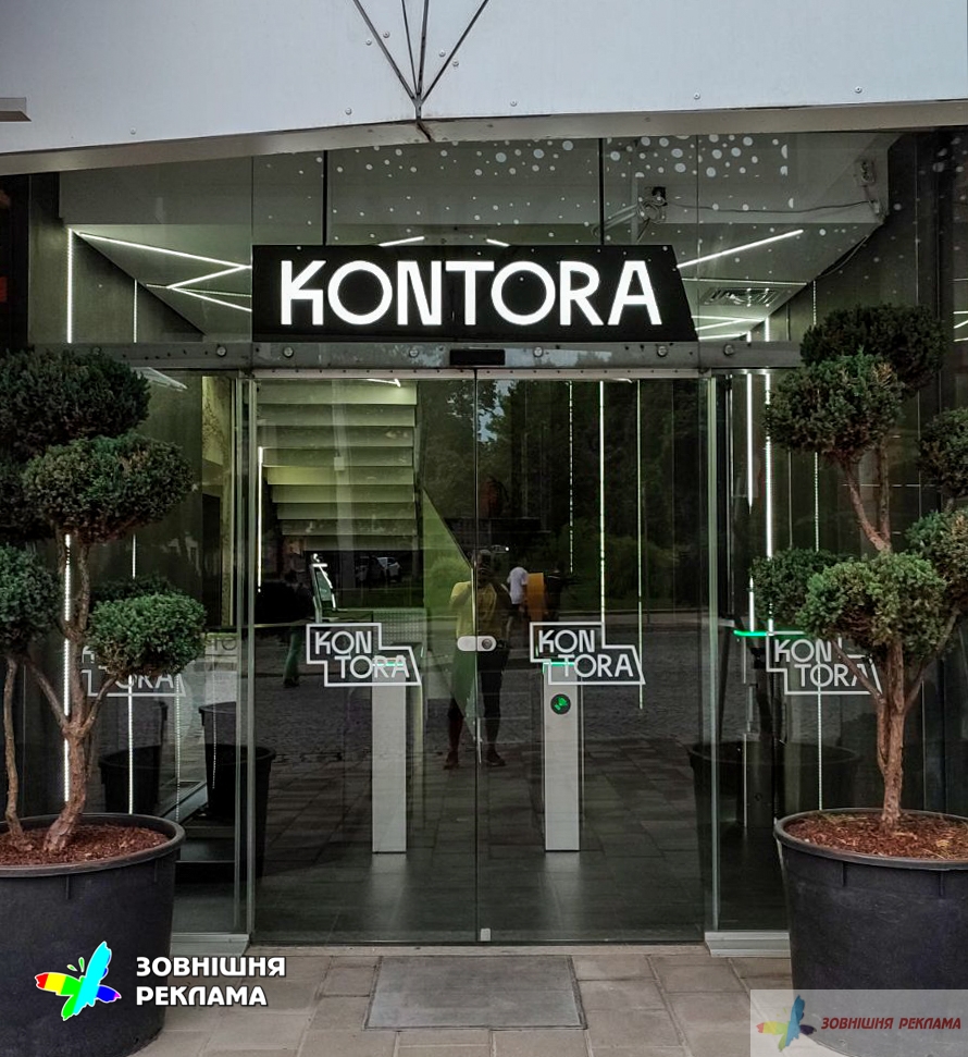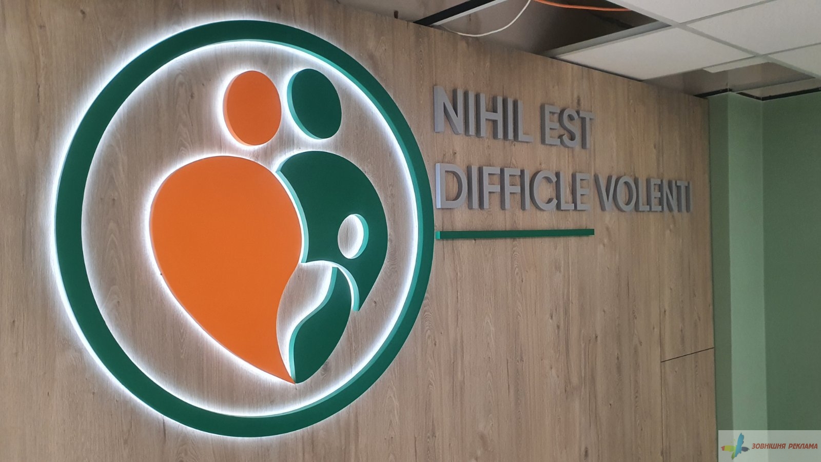 Світлова вивіска. Об'ємні літери з акрилу з прямою діодною підсвіткою. Виготовлення і погодження Зовнішньої реклами у Львові.