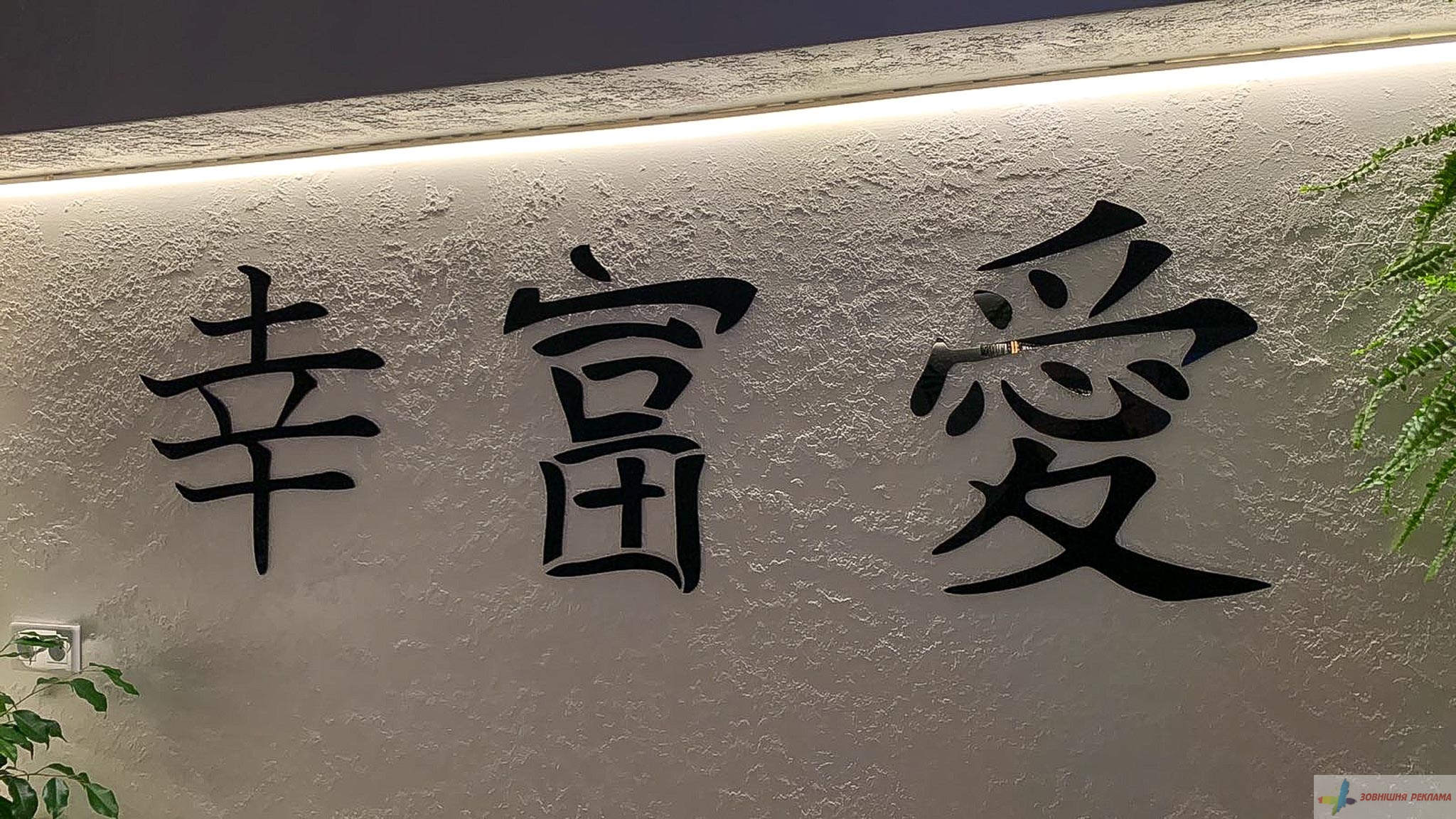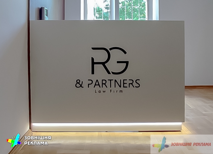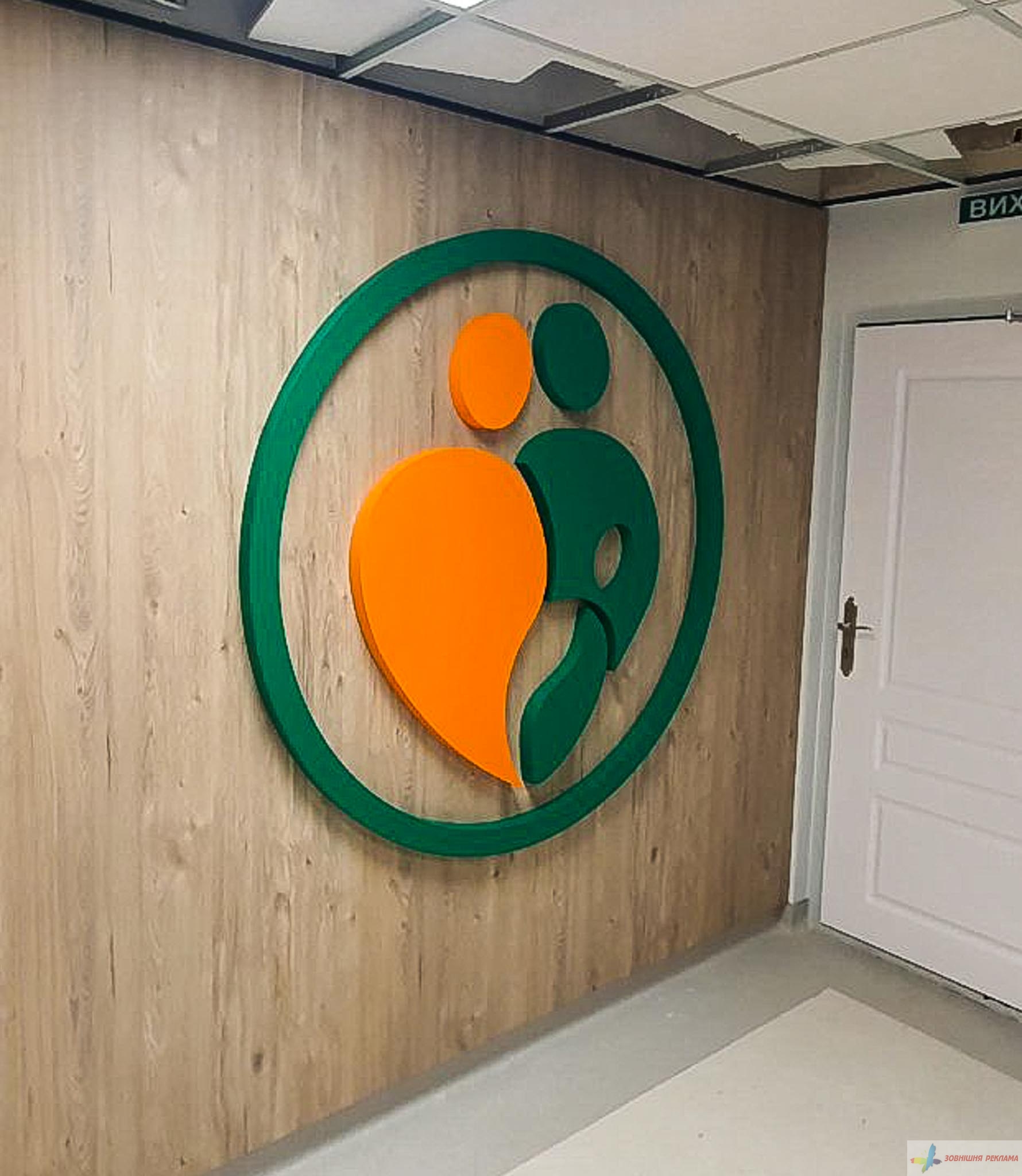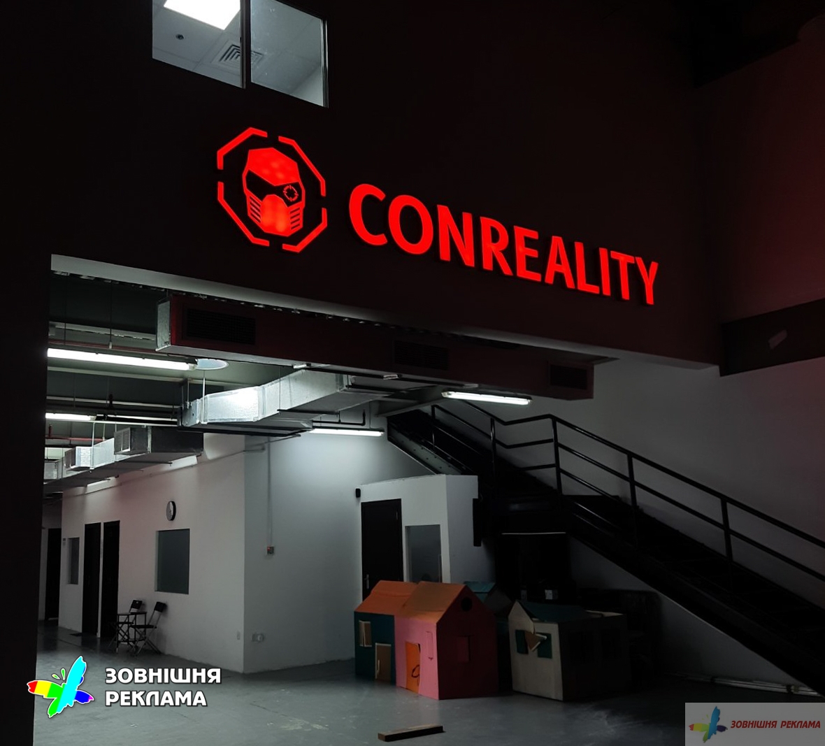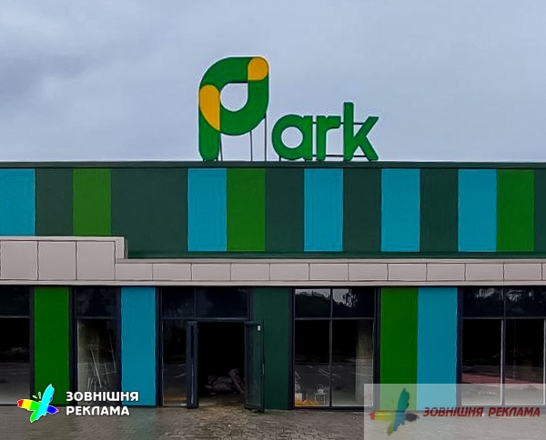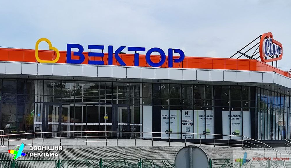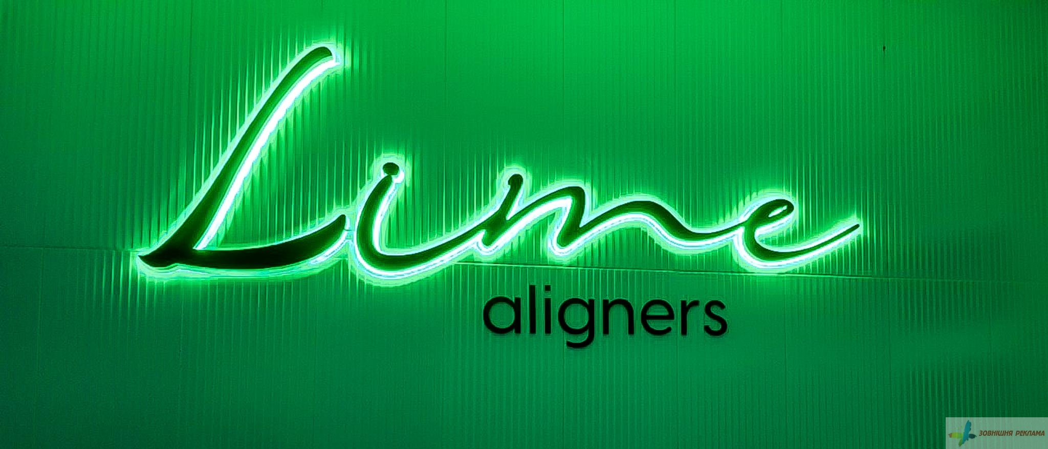Вивіска з об'ємних літер, фронтальна динамічна/анімована підсвітка. Матеріали: акрил кольоровий, динамічні діоди.
